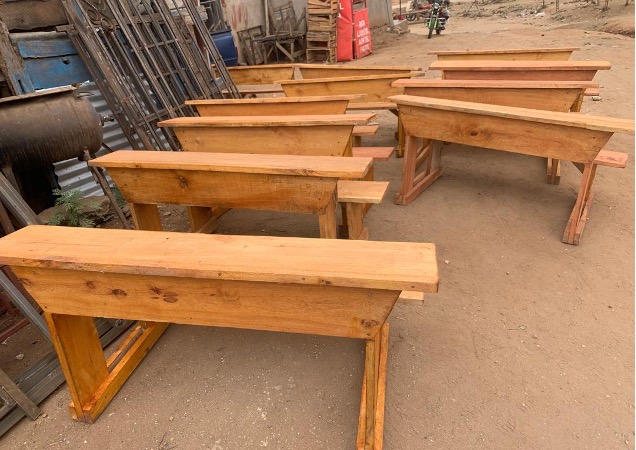 1. We provided 15 school desks for students in Tanzania. 3 students per desk + 45 students
