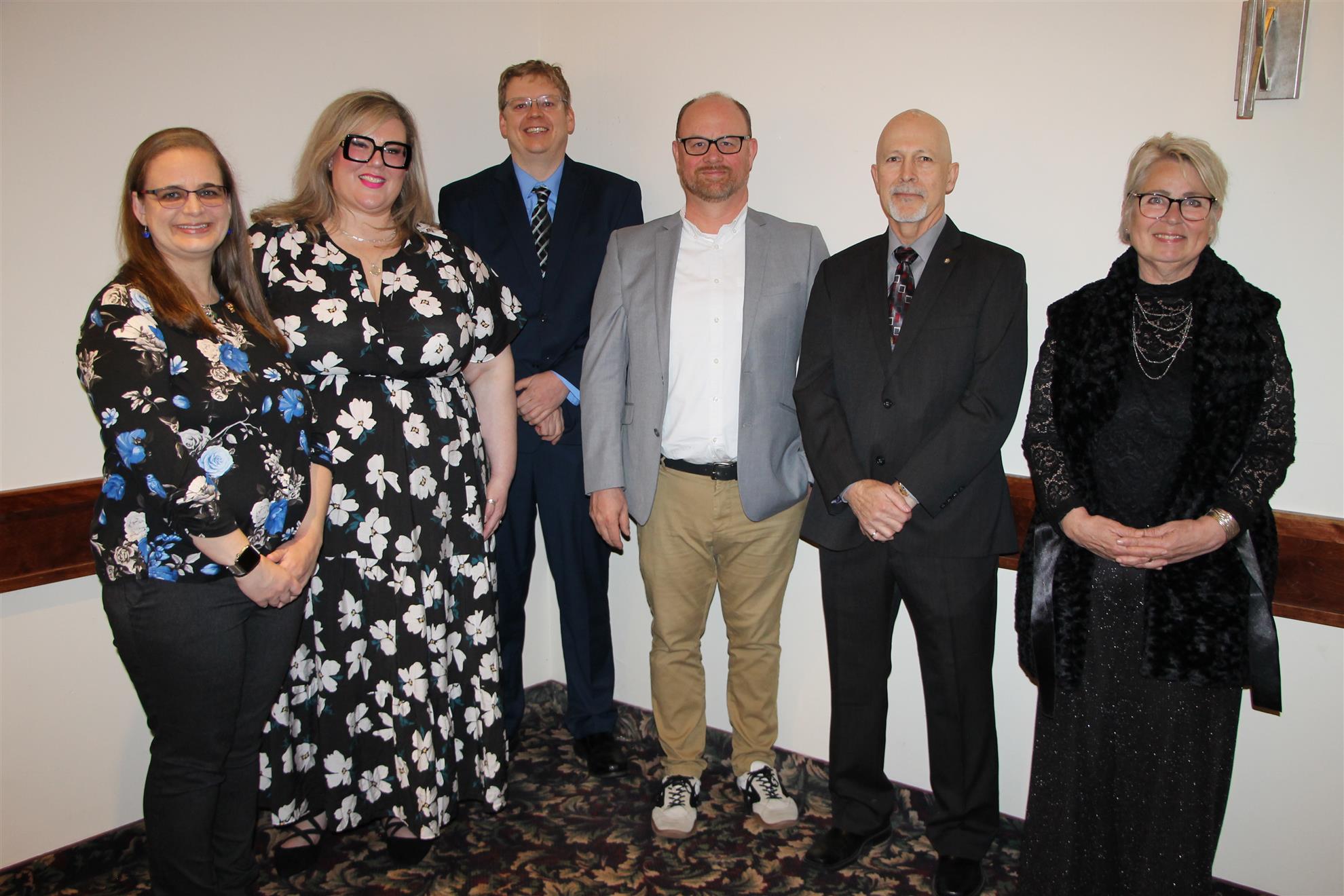2025 Community Service Awards Recipients. From Left to Right: Lisa Cassidy, Monica Lapajne, Sam McLeod, Aaron Holmsberg, Sylvio Roy, Michelle Schwarz.